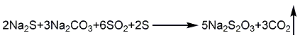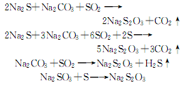 2、硫化堿法利用硫化堿蒸發殘渣、硫化鋇廢水(含有:碳酸鈉和硫化鈉)配制成的原料液與二氧化硫反應,經澄清后加入硫黃粉進行加熱反應,經蒸發、冷卻結晶、洗滌、分離、篩選,制得硫代硫酸鈉成品。其反應方程式如下: